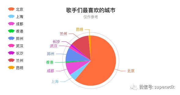 同样的,我也分析了歌手们最喜欢的城市,结果如下: