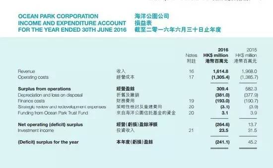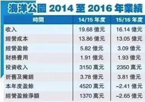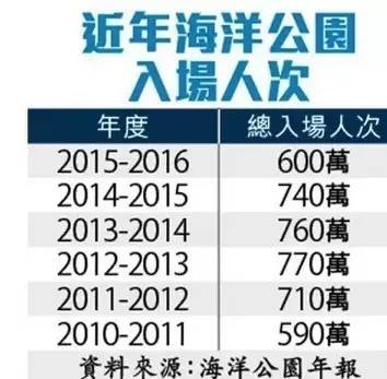 根据海洋公园2016年12月公布的2015-2016年度业绩报告,截至2016年6月30日,接待旅客近600万人次,较上一年的740万人次,下跌18.8%;公园业绩转盈为亏,营运亏损高达2.41亿港元(约合人民币2.1亿元)。