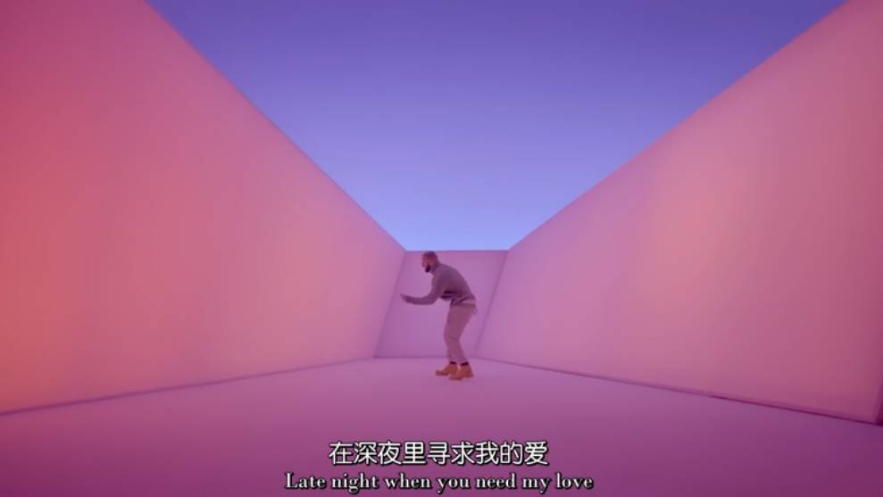 Drake舞蹈跳得沉醉,一会儿钻进了甜蜜的回忆里,一会儿掉落在苦涩的现实中,色彩斑斓的活动空间施予他亦真亦幻的魔法。咦……等一下!MV里这种梦一般的感觉是不是有点儿似曾相识?没错!这支MV的灵感正是来自于这位胡子花白的美国大叔,光线艺术家詹姆斯·特瑞尔的艺术作品,他可是被洛杉矶艺术博物馆馆长迈克尔·高文盛赞为迄今为止无人超越的灯光装置艺术家呢!不过詹姆斯本人一直都非常懊恼,他认为这支MV完全是在抄袭他的作品,但是我个人更愿意理解为是Drake像詹姆斯的致敬。