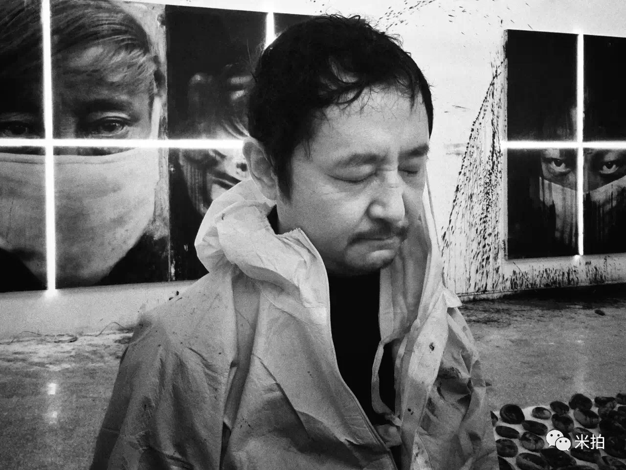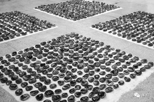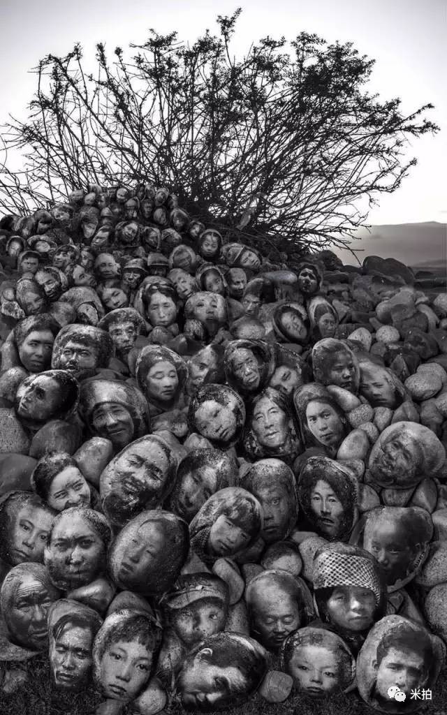 高波的这组作品叫《献 曼达》,他把1000个西藏人的肖像放大在鹅软石上....