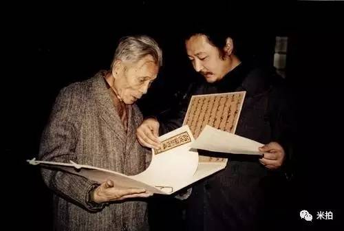 高波(右)与他的老师吴冠中(左)