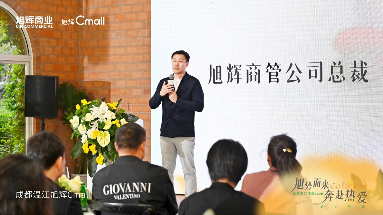 旭势而来 奔赴热爱!旭辉商业总裁彭沛锡先生出席并致辞。近年来,旭辉商业持续推进产品和运营创新,已在北京、上海、成都等城市布局商业综合体32座。其中,成都温江旭辉Cmall作为温江大学城区域首个大型TOD商业综合体,致力于打造乐活潮趣新中心,为消费者带来一种新的生活方式和消费体验,成为城西商业新地标。同时彭沛锡先生对各品牌及媒体的支持表示诚挚的感谢,成都温江旭辉Cmall必将在5月31日精彩呈现。