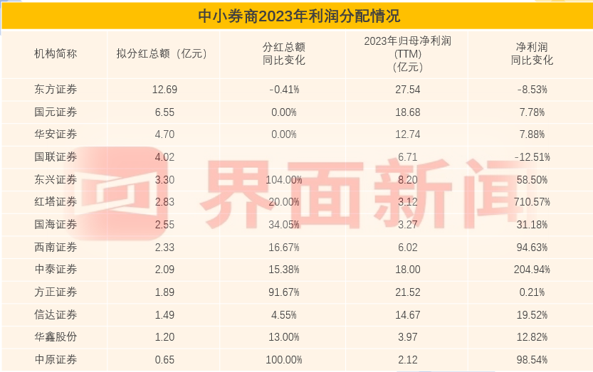 上市券商2023年年度分红哪家强?