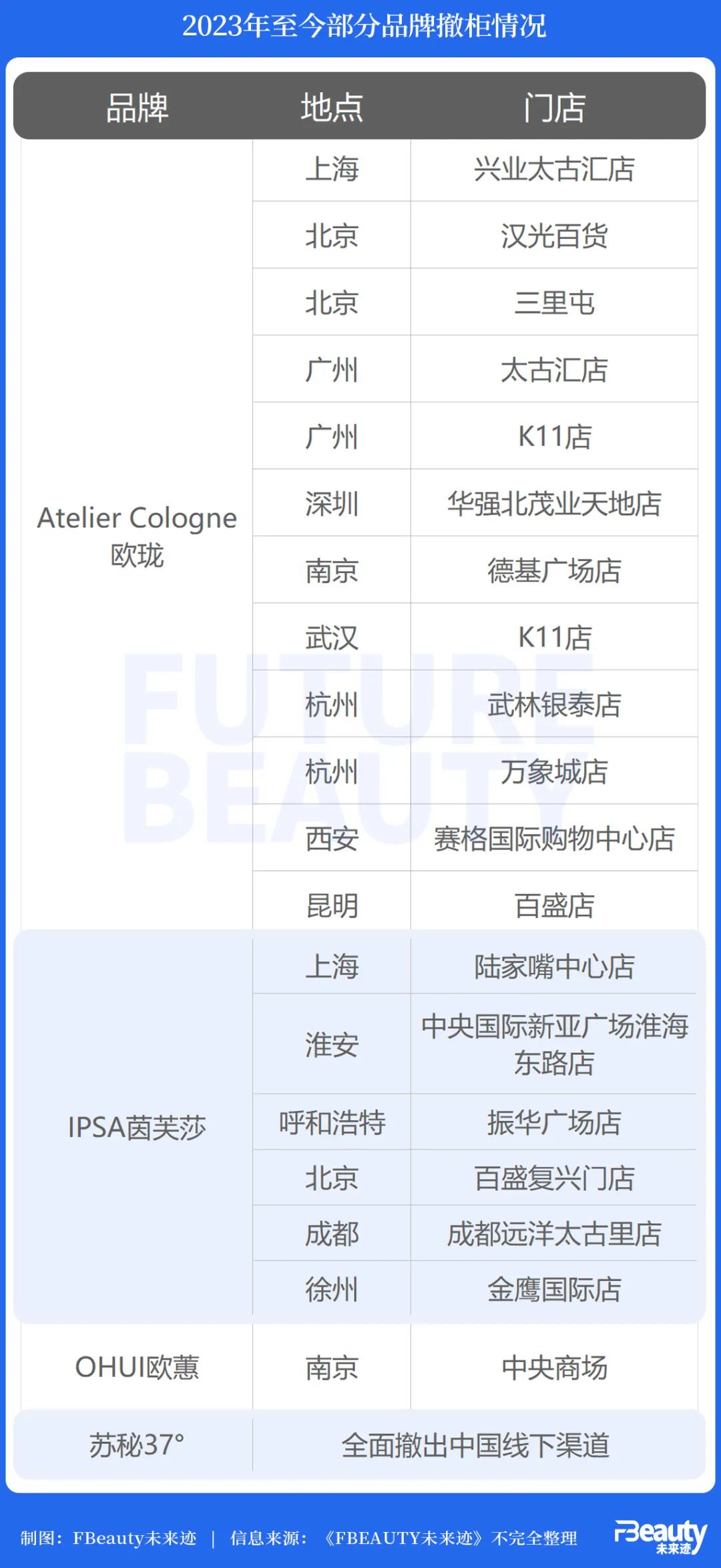 去年以来,Atelier Cologne欧珑、IPSA茵芙莎、贝玲妃、苏秘37°等品牌线下调整消息不断传出,国际美妆品牌撤柜潮的舆论一度甚嚣尘上。