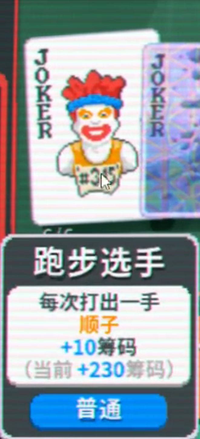 这时好巧不巧,你又拿到了“跑步选手”等成长性小丑牌,那么到游戏后期只需要打出一次顺子就能秒天秒地。