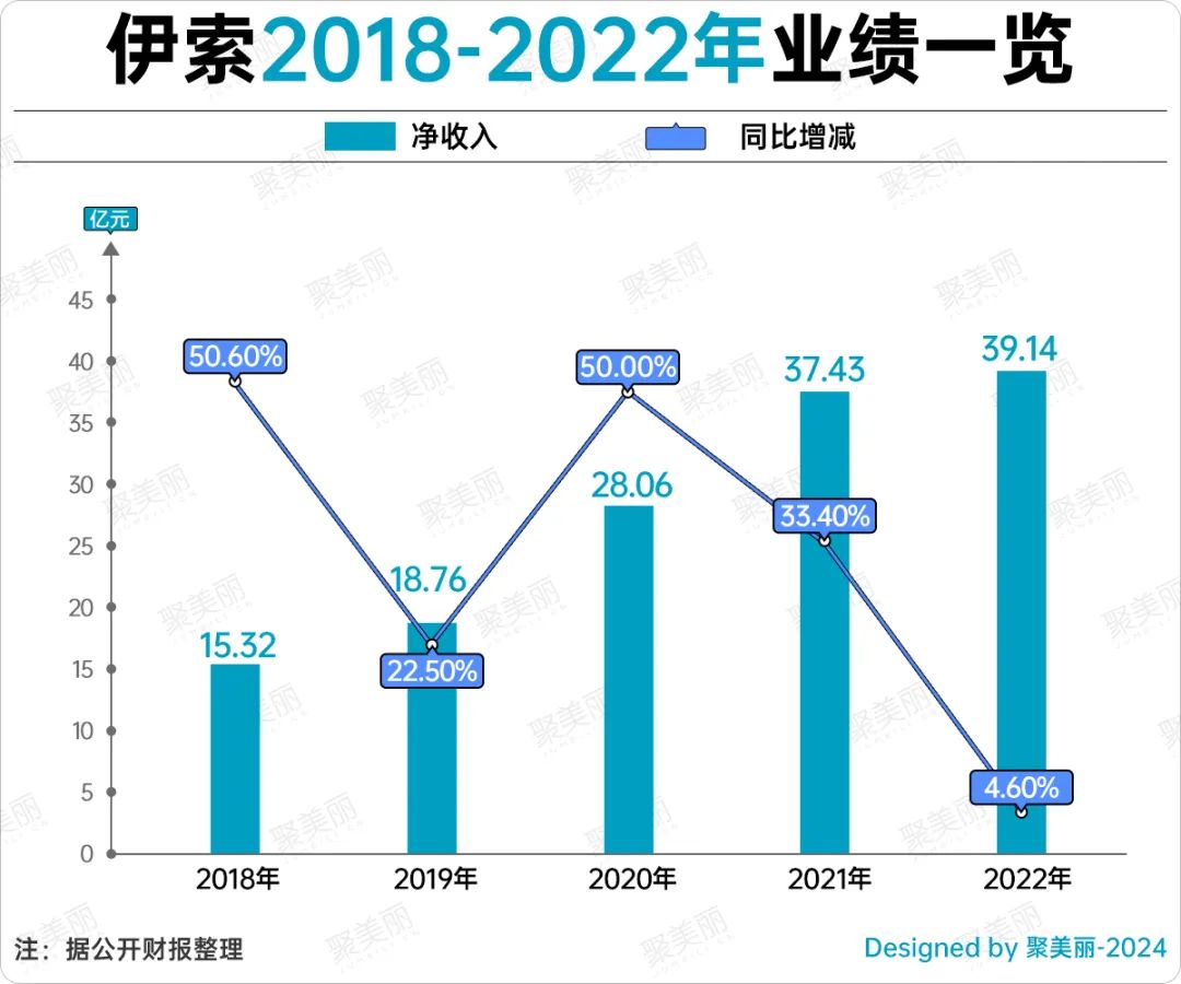 财报显示,伊索Aēsop2018年-2022年净收入持续增长,如今已是约40亿规模的品牌,且除2022年外增速均达双位数。