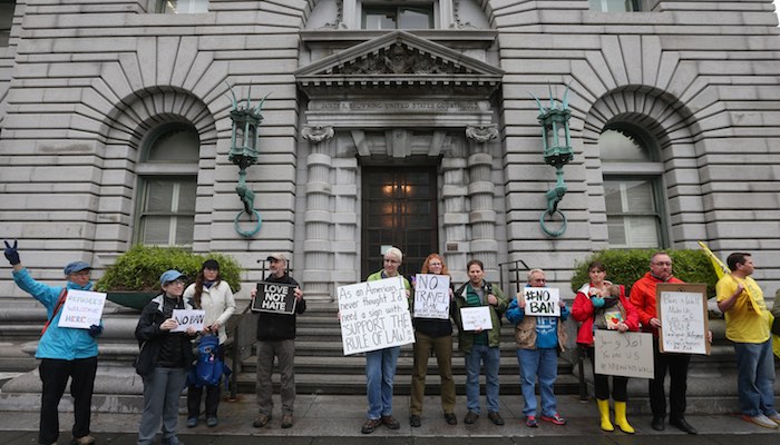 迄今为止,该命令已经在美国各州引发了多个法律裁定,一些已经对特朗普禁令发起了挑战,比如终止驱逐护照持有者等,但上周五西雅图法官詹姆斯·罗巴特(James Robart)做出的判决影响最大最深远。他判令即刻冻结特朗普这一禁令,同时指出该禁令适用于美国全境。