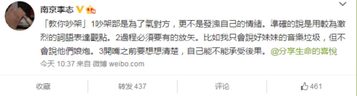 我曾问过一个李志铁粉一个问题:“李志是怎么火的?”作为一个大学李志没火时就听他歌的人,她表示回答不出来,只是多年来隐约觉得李志的音乐制作水平不断提高,现场演唱赢得越来越多的认可,同时在社交网络的直抒己见,撕逼让其曝光度不断增加,巅峰时期的李志在社交网络上毫无疑问是一个大V。