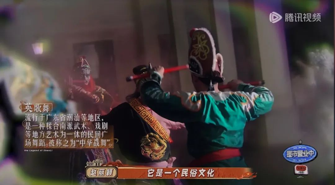 而这个玉面判官,包括赵丽颖出场前一系列中国风仪式,其实都是节目组融合民间非遗项目而精心设计。比如抬轿人灵感源于潮汕地区的“英歌舞”,它是一种集戏剧、舞蹈、武术等元素于一体的传统民俗;仪式里戴面具的恶鬼,则取材我国商周时期就有的民间非遗舞蹈“傩戏”,它是汉族最古老的一种祭神跳鬼、驱瘟避疫的娱神舞蹈。