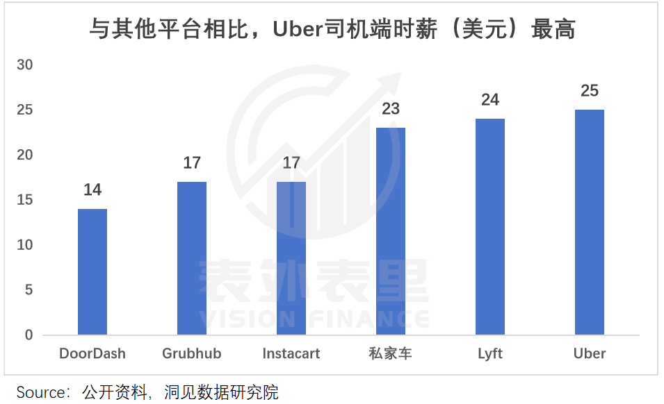 这样一来,司机们就可以在载人和送外卖之间丝滑衔接,减少空跑距离,增加收入。如下图,Uber司机的收入高于其他单一出行或外卖平台。