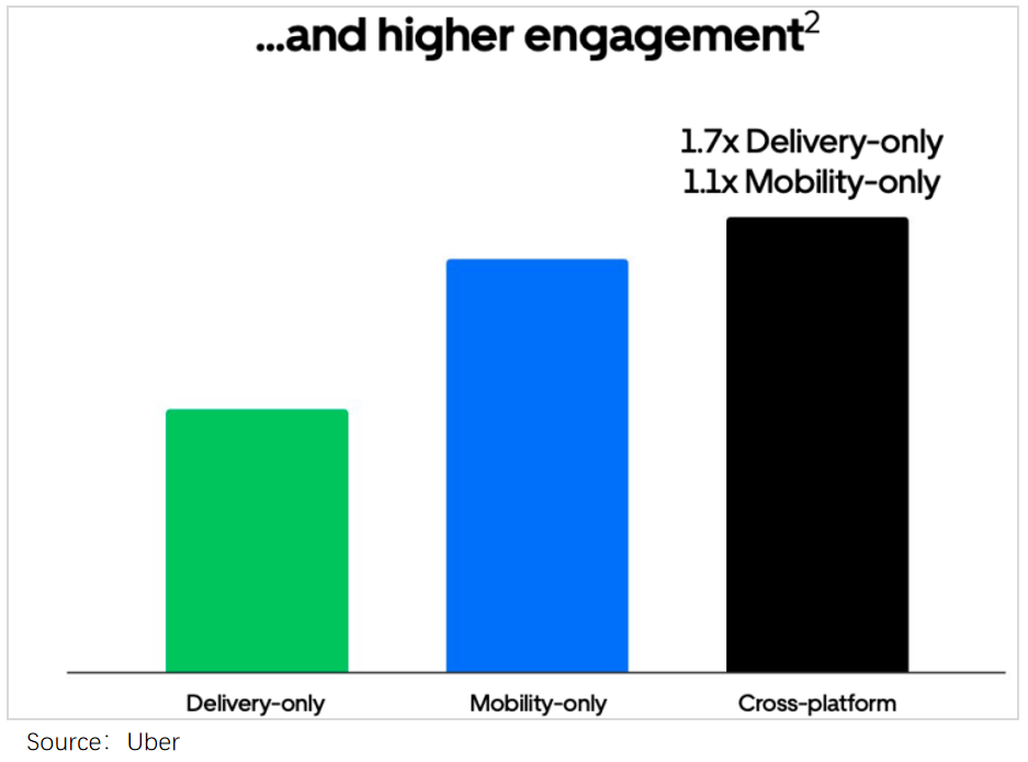 会员一多,订单量自然提高,以外卖为例,Uber会员不仅拉动了订单量,还贡献了一半的外卖订单量。