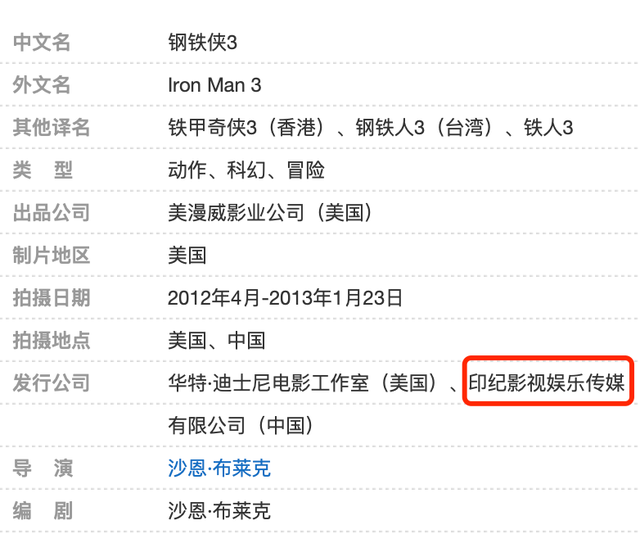 辉煌时期,印纪传媒与好莱坞片方合作,出品了《环形使者》和《钢铁侠3》两部中美合拍片,都取得了巨大的成功,尤其是《钢铁侠3》,在国内收获了7.54亿元的票房,位列当年国内票房榜亚军。
