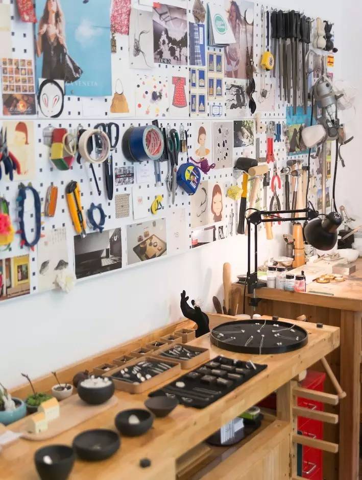 这里就是首饰展示台和工作桌,平时Angie就在这里完成她的新创作。