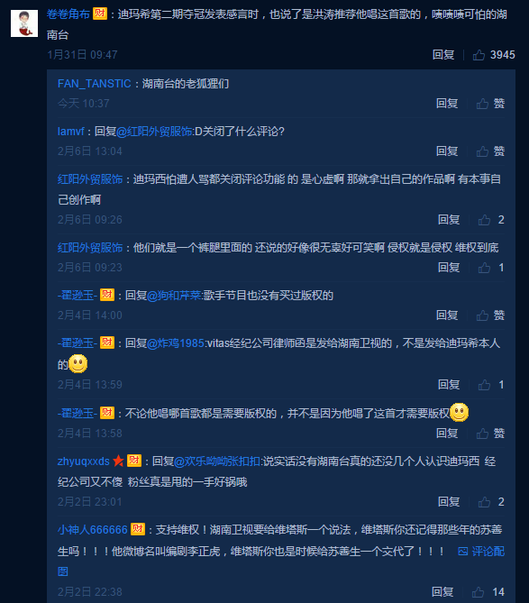 特别是前不久洪涛为迪玛希选择的《Opera 2》,虽然让迪玛希蝉联第一,却引来了原唱维塔斯的一纸诉讼。这也是滚君要说的第三点——侵权。