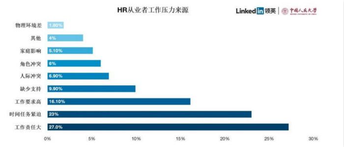 你有什么事就去找HR,而HR们表示自己已经压力山大——超过27%的HR从业者认为工作责任大是压力的主要来源,时间紧任务重、工作要求高和缺乏支持也是他们“累觉不爱”的原因。事实上,HR从业者平均每日工作时长达到8.45小时,其中71.94%的从业者表示每天都需要加班,平均加班时间为1.28个小时。