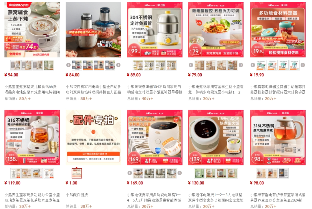 双方在产品上的定位也不同。“小熊电器主要是靠网络渠道销售,其产品以中低端产品为主,客单价较低。而在国产品牌中,美的、苏泊尔、九阳股份处于相对中高端的位置,品质质量相对有保证。”梁振鹏表示。