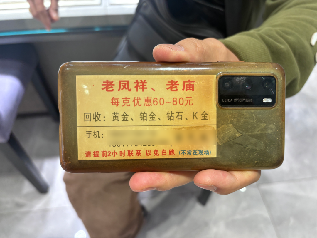 4月9日,《IT时报》记者探访多家上海豫园线下金铺,刚进门不到一分钟,被一位样貌看似年近七旬的老者拦下,“你手里有金子要卖伐?我550元一克回收你的黄金。”说罢,老者向记者展示了自己的纸质名片,上面标注了金店优惠合作价、回收范围以及联系方式。