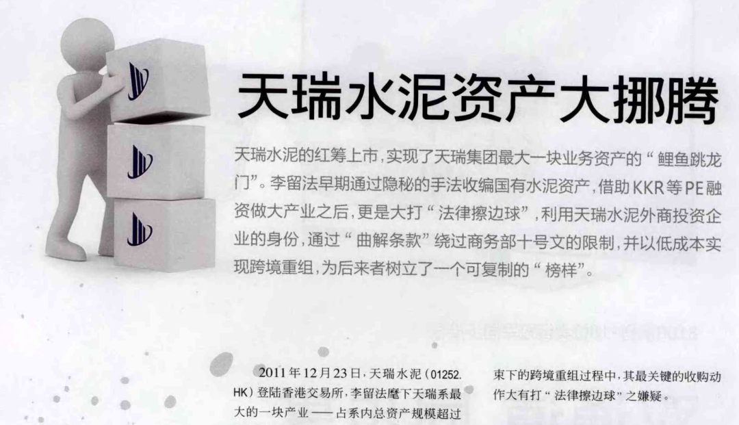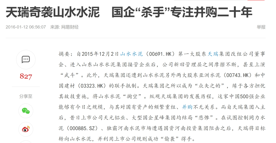 具体而言,天瑞水泥在收购过程中曾上演“全武行”;也曾在从国资手中接过上市公司后,用自身临近淘汰的资产换回其巨额现金,该公司最后沦为“空壳”,无奈退市。