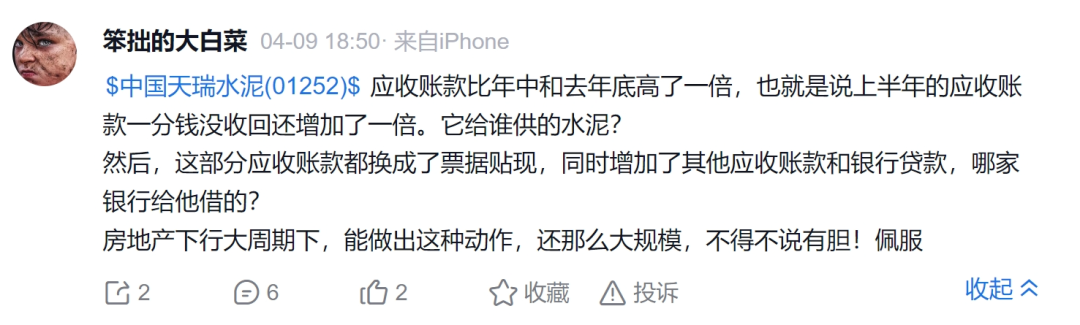 有雪球投资者认为,其他应收款高,可能是大股东或关联公司通过借款把钱从上市公司借走了,存在上市公司被掏空的可能;还有投资者好奇,在房地产下行、信贷收紧的大周期下,天瑞水泥是如何让自身的借款在一年内大规模提升的?是跟谁借的钱?