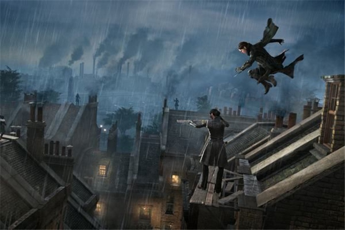 游戏设定在维多利亚时期的伦敦,主角可以在Jacob和Evie Frye之间切换。育碧终于升级了这款游戏的核心机制,设置了一个能感应到敌人的“危机感应环”,还有方便的“潜行”键,让玩家在潜入时更加得心应手。
