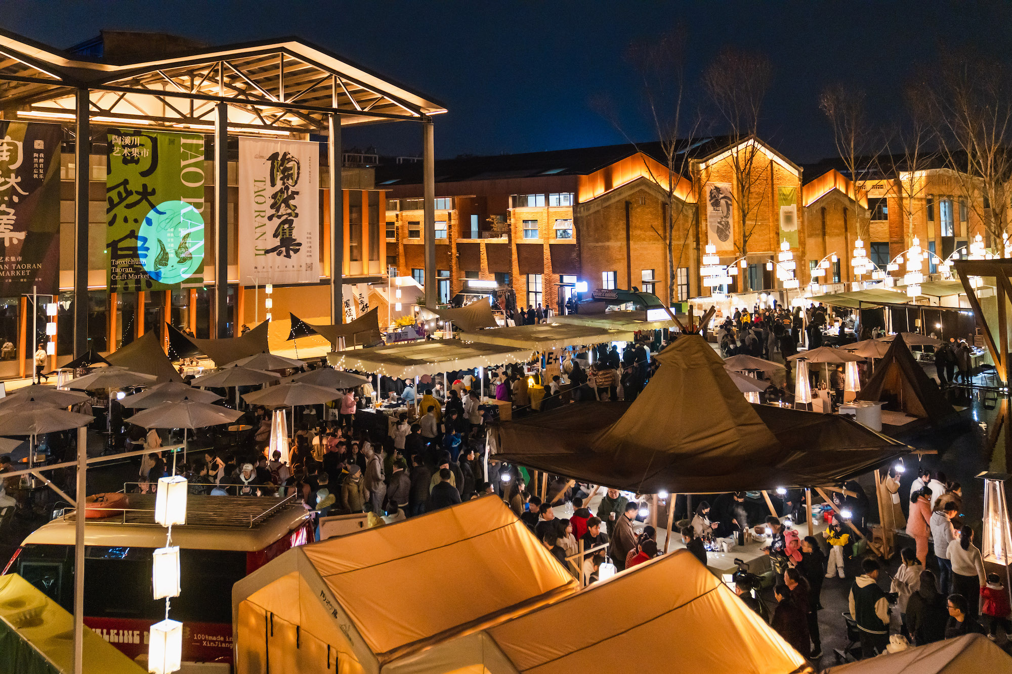景德镇也看到了集市的作用:帮助年轻艺术家实现低成本创业,同时又吸引年轻消费群体了解陶瓷文化。陶溪川趁热打铁,设计了创意集、陶然集、春秋大集“三大集市”IP。在周五、周六、周日晚上开放的创意集,提供总计1500个摊位,吸引2.4万创客入驻。