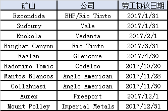 而且值得注意的是,此次智利Escondida铜矿的劳工协议到期仅是2017年全球铜矿面临薪资谈判的开始,上半年全球主要铜矿还将进行4次谈判,而下半年则有5次谈判。