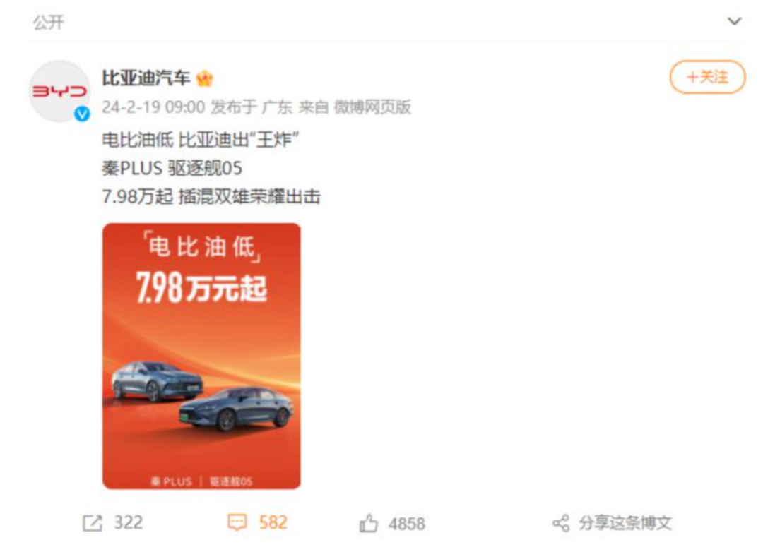 始于2023年初的国内新能源车价格战,不仅未熄火,反而开年就由一哥比亚迪以“电比油低”强势“掀桌子”。