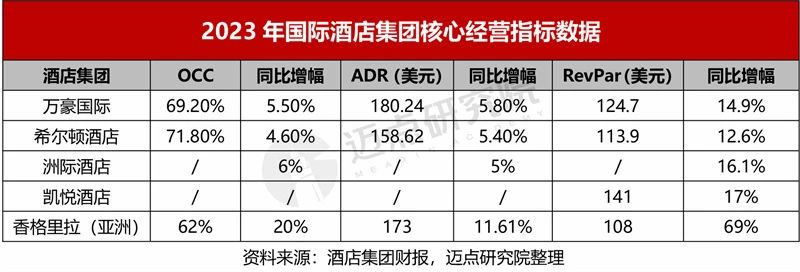 二、2023年国际酒店集团财报表现:万豪国际集团营收与净利均高居榜首,同比分异特征明显