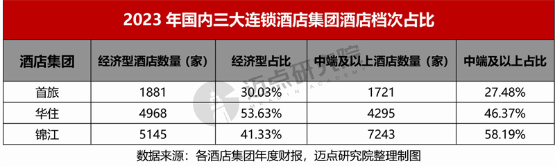 产品升级情况:为顺应酒店消费升级需求,各大酒店集团亦不断调整产品结构、持续迭代产品、完善品牌矩阵。首旅酒店新推出定位于中高端商务休闲市场的酒店品牌扉缦酒店,自主创立发展“安涯”和“诺岚”两个全新前卫的国际化高端及奢华品牌,截止报告期末,其中端及以上酒店数占比提升至27.48%。锦江酒店则将业务扩展至全服务酒店,2023年新成立了锦江丽笙酒店管理公司,成为锦江酒店旗下新的高端酒店业务板块。华住集团继续以经济型和中档酒店为核心,并推进旗下品牌升级迭代,如打造全新的汉庭3.5,推出全季5.0产品发力中端市场。