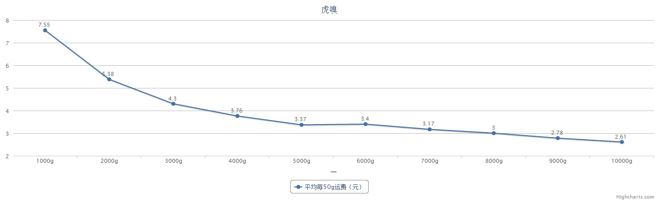 说到拼单问题再多聊两句,下面是一张货物重量和运费的表格。可以看出在5000g对应的平均每50g运费低于6000g,而二次元周边产品普遍属于小件,因此作为二次元海淘平台应该鼓励用户多进行拼单。