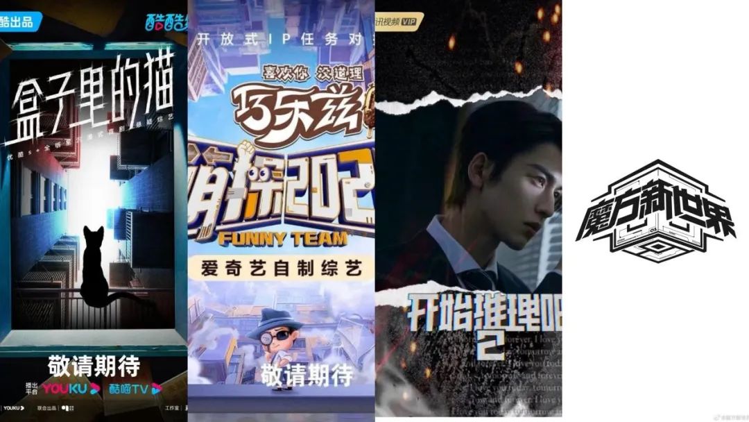 几乎是前后脚,爱奇艺全开放式IP任务对抗真人秀《萌探2024》官宣嘉宾阵容,并出现在爱奇艺4月剧综片单上;腾讯视频官宣推出《与凤行》衍生团综——沉浸式中式恐怖密室体验节目《推市营业中》,平台的另一档沉浸式剧情推理综艺《开始推理吧2》发布“推镇”氛围感照片。