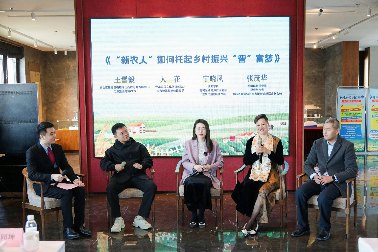 此次论坛汇集了多位往期明星导师与优秀学员,包括崂山区王哥庄街道峰山西村电商首席CEO、仁洲集团电商CEO王雪毅,大花朵朵文化传媒创始人大花,鲁城渔红岛海鲜店副总宁晓凤,以及西海岸新区张家楼街道新联会副会长张茂华。他们围绕《“新农人”如何托起乡村振兴“智”富梦》这一主题,展开了深入的对话。
