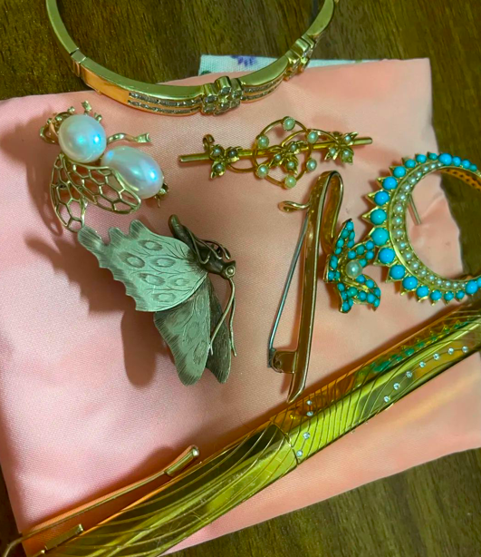 有一次,老板给我展示了她的收藏柜,里面是从各个国家淘来的黄金首饰。从那时起,我也开始收藏黄金饰品。先从比较小的胸针入手,我喜欢希腊和北欧风格,每一个胸针的价格从3000元到8000元人民币不等。