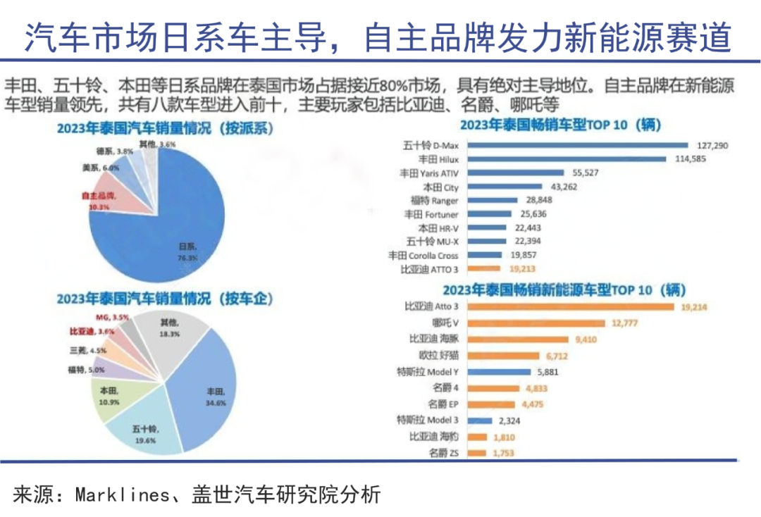 根据市场研究公司Marketline的数据,2022年泰国本土销售约85万辆汽车,其中销量前十名的车企品牌,有八家都是日系车企。日系车企在泰国的市占率常年都在八成以上。