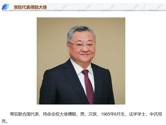 傅聪已任中国常驻联合国代表、特命全权大使