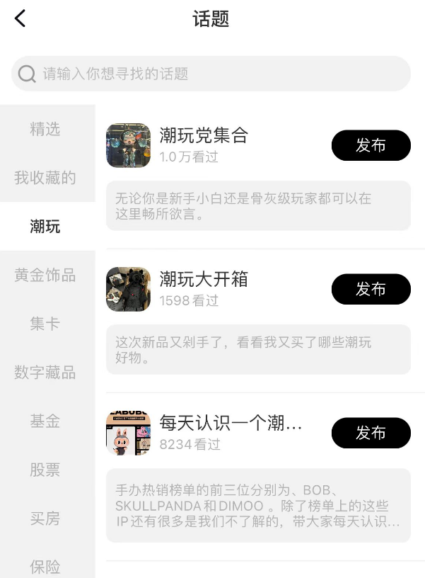 价值圈app是一个年轻人潮流理财方式分享社群,在热门话题中,除了有基金、股票、保险等传统理财方式外还可以看到潮玩转区,潮玩也已经成为年轻人中流行的新型理财形式。对于年轻人而言、好玩潮流创意的事物极具吸引力很容易掀起流行浪潮,比如KAWS、MOLLY、BJD到现在各种各样的潮玩都曾从圈内火到了圈外,尤其是合作款、限定款、联名款会随着时间的推移更具收藏价值,身价也不断上涨。