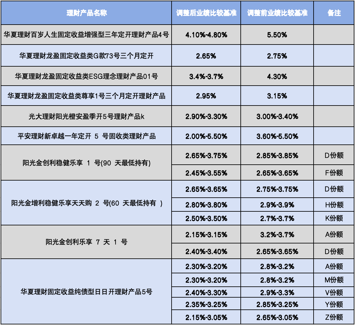 近日,多家银行理财子对旗下理财产品的业绩比较基准进行了下调。