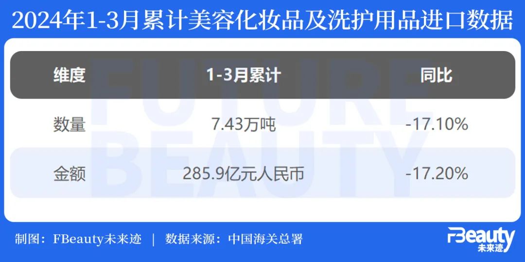 据中国海关总署最新公布的1-3月化妆品进口数据显示,今年一季度进口品在数量和金额上持续下滑超过17%。