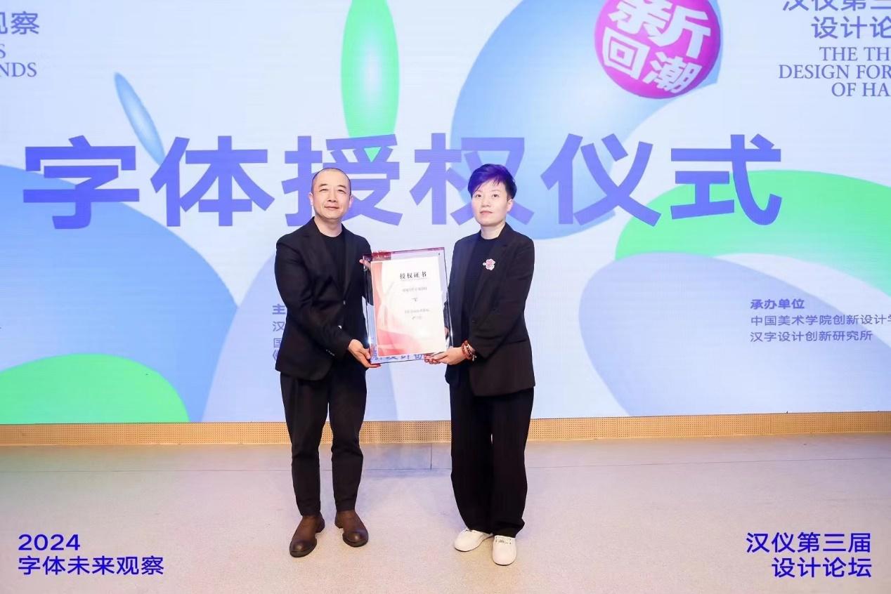 活动现场,汉仪字库向中国美术学院授权汉仪全字库字体使用,并开放字由客户端会员名额,方便学院老师和同学交流分享使用,支持学院教学工作。字由是汉仪股份旗下为满足多方商业用字需求搭建的开放性平台,目前已有370余款会员字体,让字体管理及使用更加便捷。汉仪股份副总经理马忆原女士、中国美术学院副院长韩绪教授出席签约仪式。