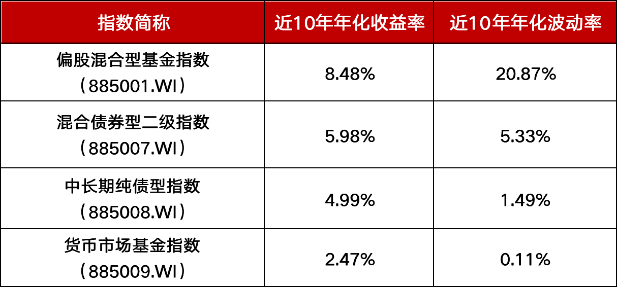 据Wind统计,截至2024年4月3日,近十年来,二级债基指数的平均年化收益率达5.98%,高于中长期纯债型指数、货币市场基金指数。长期看,二级债基指数的整体收益水平低于偏股混合型基金指数,但波动性、风险性有较大的优势。