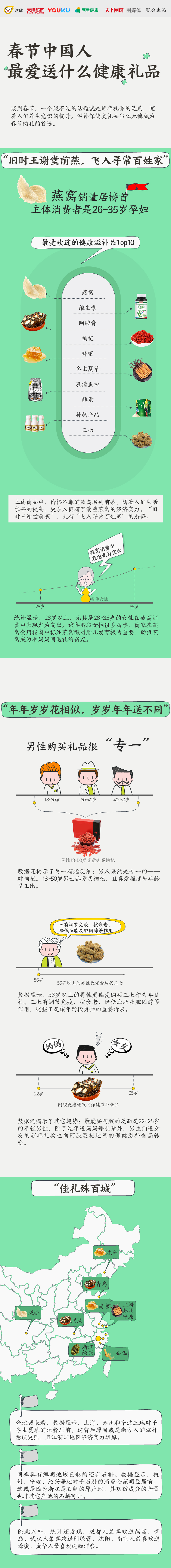 除此以外,成都人最爱松燕窝,青岛、武汉人钟情阿胶膏,沈阳、南京人乐于买蜂蜜,金华人喜欢西洋参。