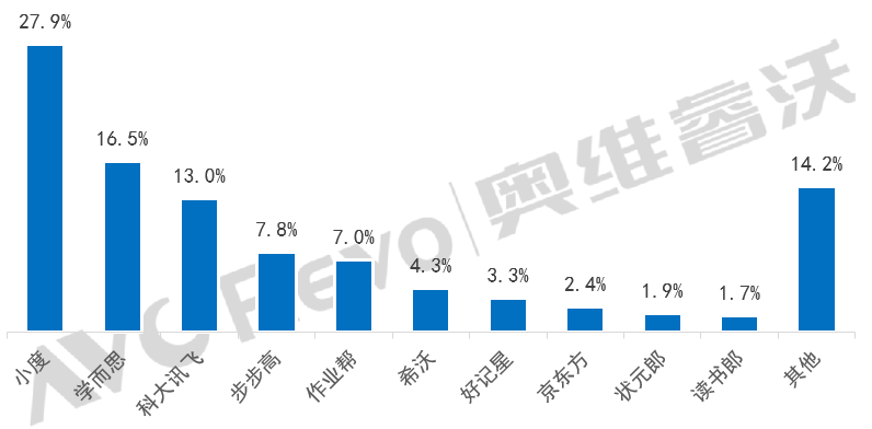 从品牌份额来看,小度以27.9%的份额占据领先位置,学而思和科大讯飞分别以16.5%和13.0%的市场份额紧随其后,其余品牌市场份额较为分散,市场中存在较多的中小型竞争者,且竞争格局较为多元和复杂。