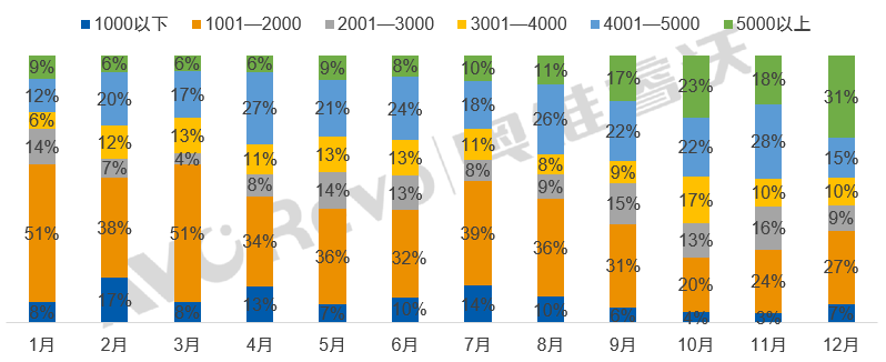 从价格段来看,1001—2000元、2001-3000元的价位段份额较高,对于预算有限或对产品性能要求不高的消费者来说,性价比高。与此同时,4001-5000元及5000元以上价格段份额有所上升,高价格段的产品不仅品质有保障,往往集成了人工智能、互动学习、个性化教学等功能。对于身处教育竞争激烈的环境中,家长们更愿意为创新功能买单,以期望孩子能够跟上时代的步伐,掌握未来社会所需的技能。