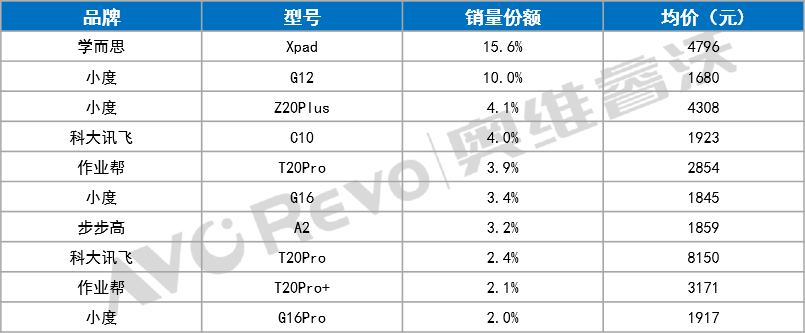 作业帮(T20Pro、T20Pro+):作业帮的T20Pro和T20Pro+分别占据了3.9%和2.1%的销量份额。均价分别为2854元3171元,两型号价格相对适中,主要针对的是追求性价比的消费者群体。作业帮作为在线教育平台,其硬件产品与在线教育资源紧密结合,为用户提供更加便捷的学习体验。
