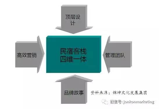 民宿客栈在做顶层设计时,既要突出核心产品,也要有模式创新。还需要形成策划(顶层设计)——团队(管理团队)——情怀(品牌故事)——推广(高效营销)的四维一体的民宿客栈整体产业链打造,才会真正让民宿客栈一炮打响,否则很容易打成哑炮。
