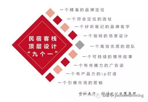 围绕这五个特点展开,我们需要在策划层面上做好“九个‘一’”的顶层设计,否则,再好的规划也很难真正落地,再好的民宿客栈也难以走出去,往往藏在深闺未从识。