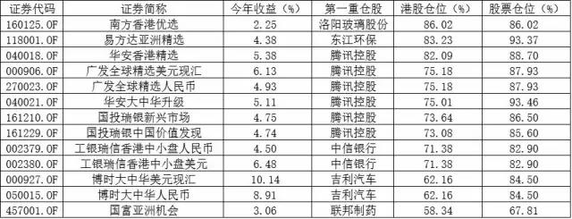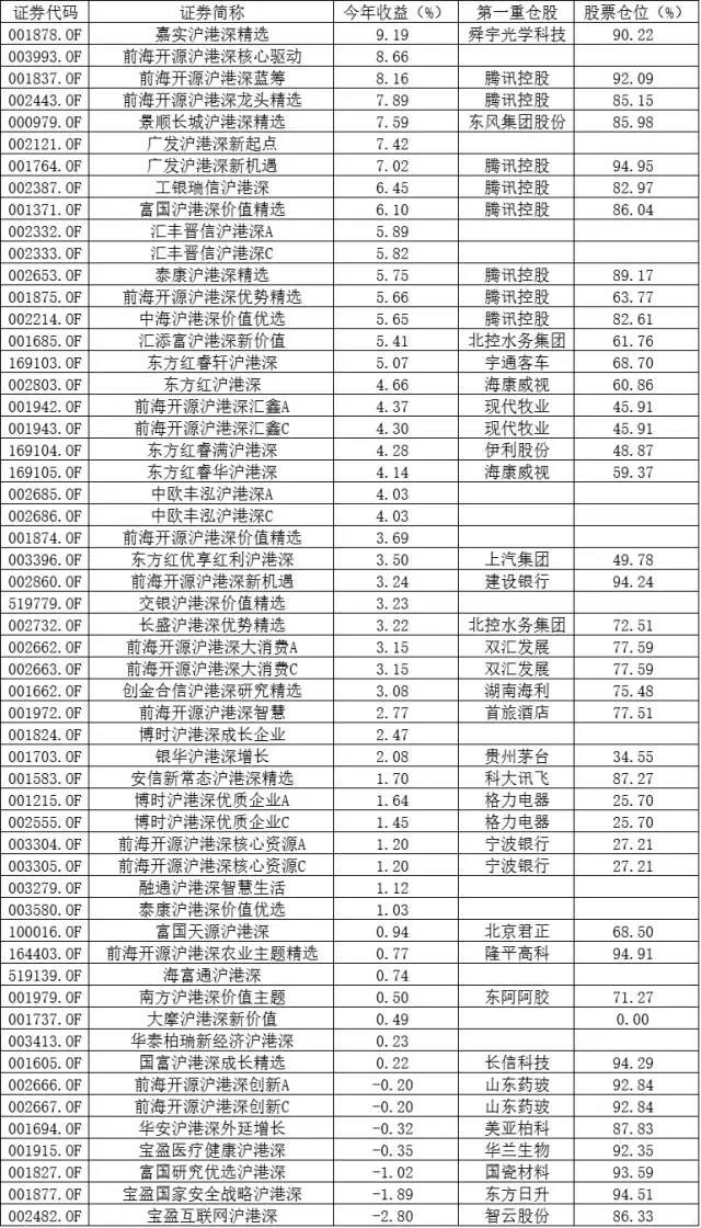 不过需要注意的是,个别沪港深基金当虽然名义上为沪港深基金,但在实际上是只投资A股,或者很少投资港股。因此要分辨该基金主要是投资A股还是港股,其近来的业绩给我们一个很好的辨别机会。(近来收益比较好的第一重仓股主要都是港股)