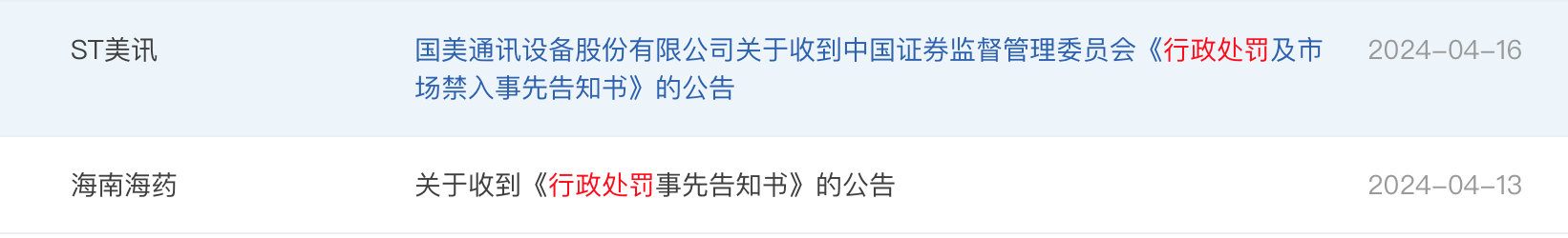 根据巨潮网统计,在“国九条”颁布日4月12日之后,已有两家上市公司收到了“行政处罚事先告知”。