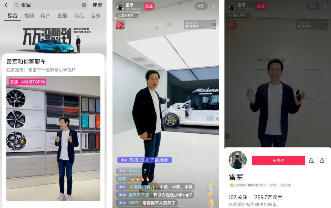 就在今天(4月18日)下午四点整,小米创办人、董事长兼CEO雷军在其个人抖音账号上开启了主题名为“万万没想到”的直播,和大家好好聊聊“SU7开售这些天”;这也是雷军继小米SU7汽车上市发布会后的首次网络直播。在抖音拥有超过1750万的雷军是当之无愧的“顶流”,开播30分钟就有超10万人次上线观看,并收获近6000万点赞。