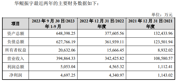 财务数据显示,2021年、2022年及2023年前9月,公司分别实现营收10.86亿元、34.24亿元、39.49亿元,净利润1143.02万元、4340.97万元、4697.25万元。